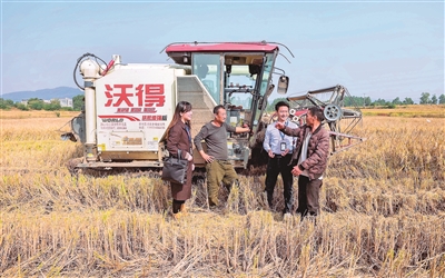 糧食安全是“國之大者”。安徽省含山縣紀委監委聚焦高標準農田建設管理中的突出問題開展一線走訪,推動“糧田”變“良田”。圖為該縣紀檢監察干部在環峰鎮城北村水稻收割現場了解相關情況。歐宗濤 攝