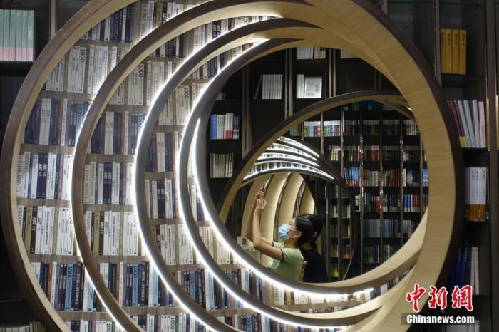 資料圖:8月19日,市民在北京西單的網紅書店“鐘書閣”拍照打卡。 中新社記者 蘇丹 攝
