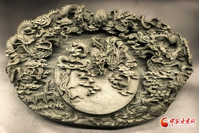 學成歸來后,徐哲將南北方工藝精髓融入洮硯創作:雕刻手法從鏤空、半鏤空轉向浮雕,讓洮硯既有精細雕工又方便存放;題材上,除傳統龍鳳外,加入敦煌飛天、黃河風情等地域文化元素,賦予洮硯更多文化內涵。