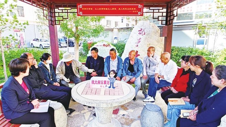嘉峪關市雄關街道鐵南社區“鐵大叔議事站”開展協商議事活動。